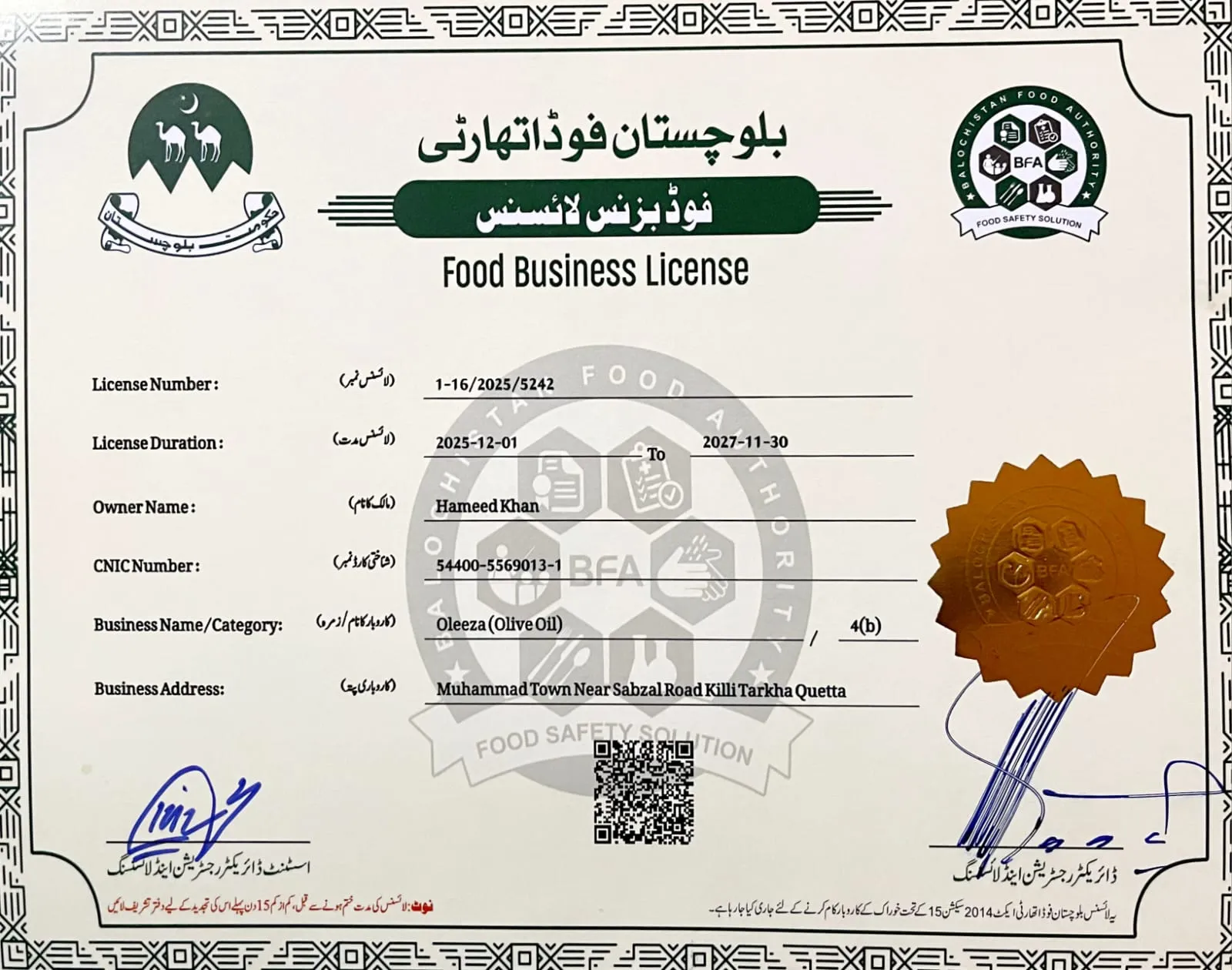 We are dedicated to bringing you 100% pure, first cold-pressed Extra Virgin Olive Oil sourced from identified 65 and 100-year-old Zaitoon trees in Loralai. Every bottle is backed by lab-verification for exceptional quality—featuring an exceptionally low acidity level (0.2% – 0.3%) and a high antioxidant (polyphenol) content.